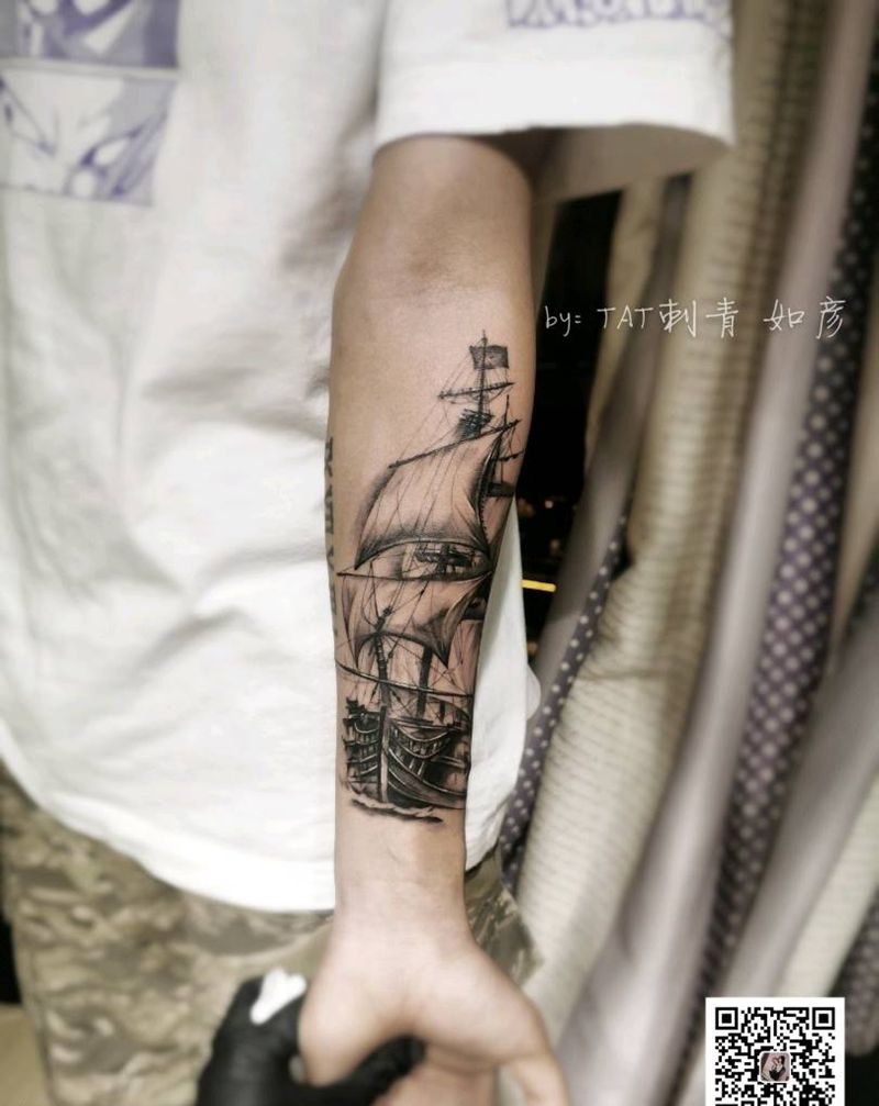帆船写实纹身图片_欧美写实纹身图案