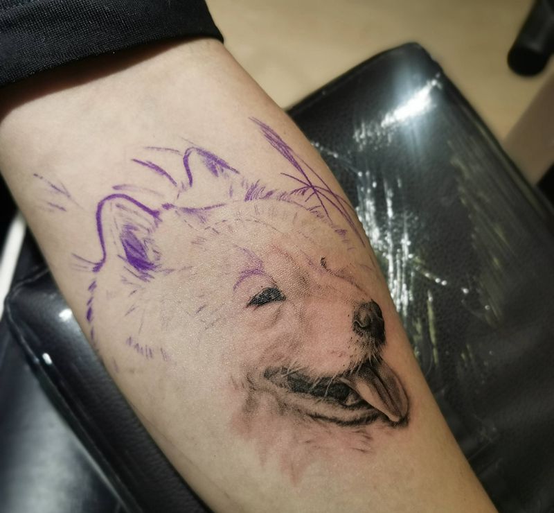 当前位置: 首页 >江苏省南京市纹身店-TAT 刺青纹身图案>写实萨摩耶纹身图片_欧美写实纹身图案