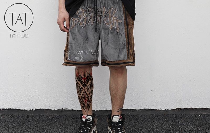 • T网红王老大花腿龙纹身图片_腿部新传统纹身图案