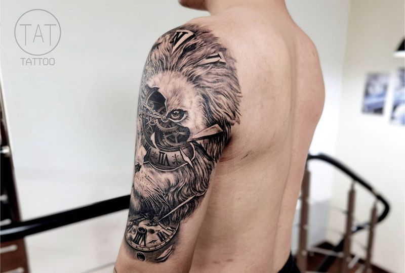 当前位置: 首页 >江苏省南京市纹身店-TAT 刺青纹身图案>写实狮子➕钟表纹身图片_欧美写实纹身图案