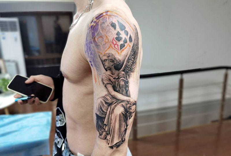 • 纹身吧推荐的披肩图腾半胛纹身图案作品展示