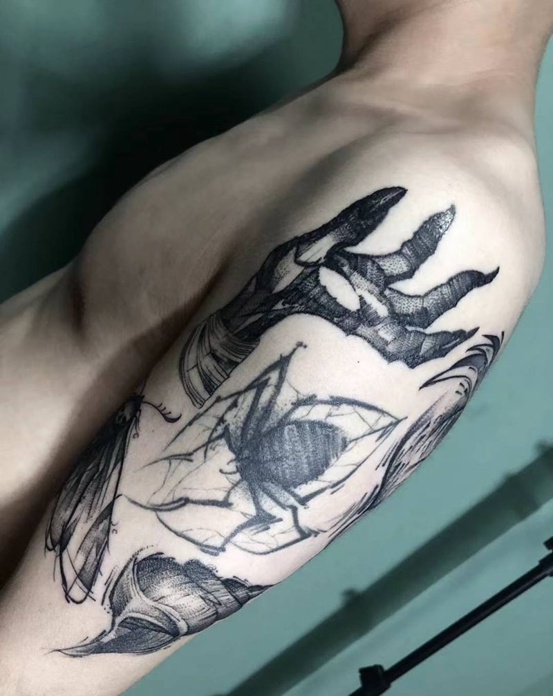 当前位置: 首页 >江苏省南京市纹身店-奇艺点工作室纹身图案>暗黑拼接纹身图片_手臂纹身图案