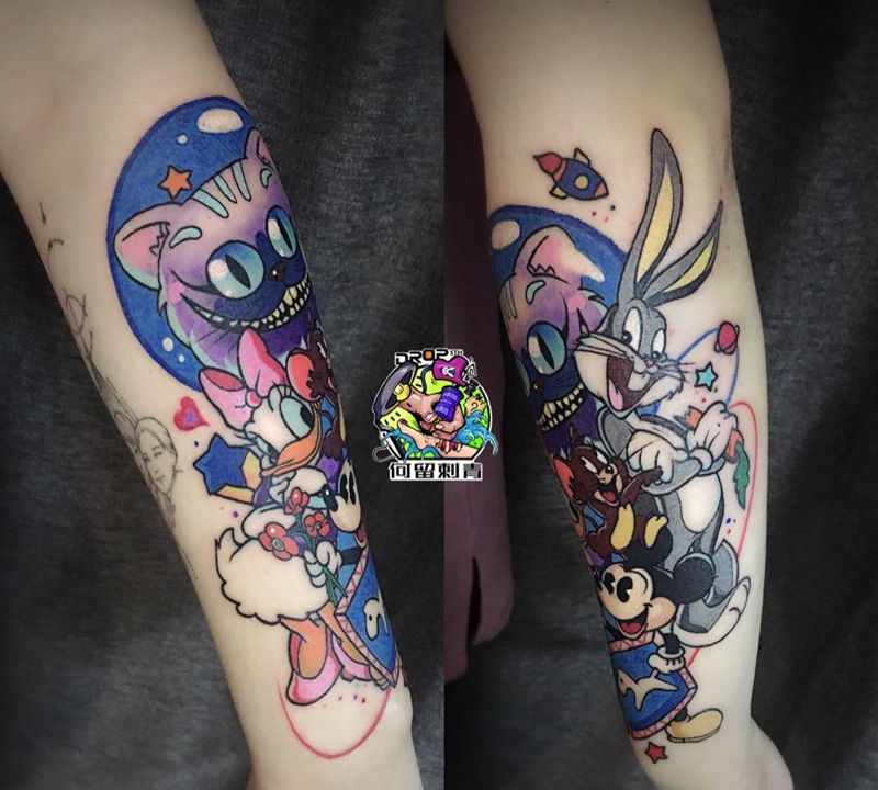 当前位置: 首页 >江苏省南京市纹身店-何留刺青纹身图案>卡通角色组合纹身图片_手臂新传统New School纹身图案