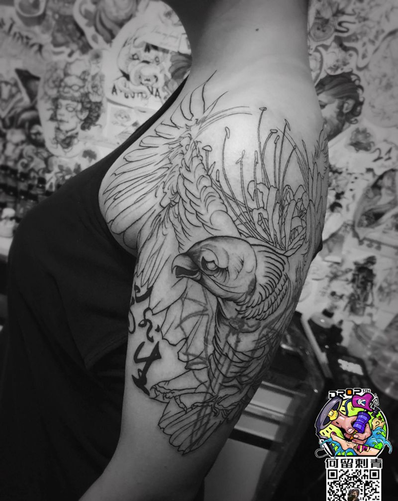 当前位置: 首页 >江苏省南京市纹身店-何留刺青纹身图案>遮盖乌鸦纹身图片_肩部New School暴力遮盖乌鸦彼岸花纹身图案