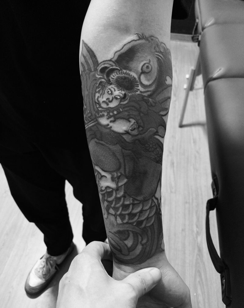 当前位置: 首页 >江苏省南京市纹身店-猩红刺青纹身图案>鬼若丸治鲤图,顺便遮盖旧纹身纹身图片_手臂老传统纹身图案