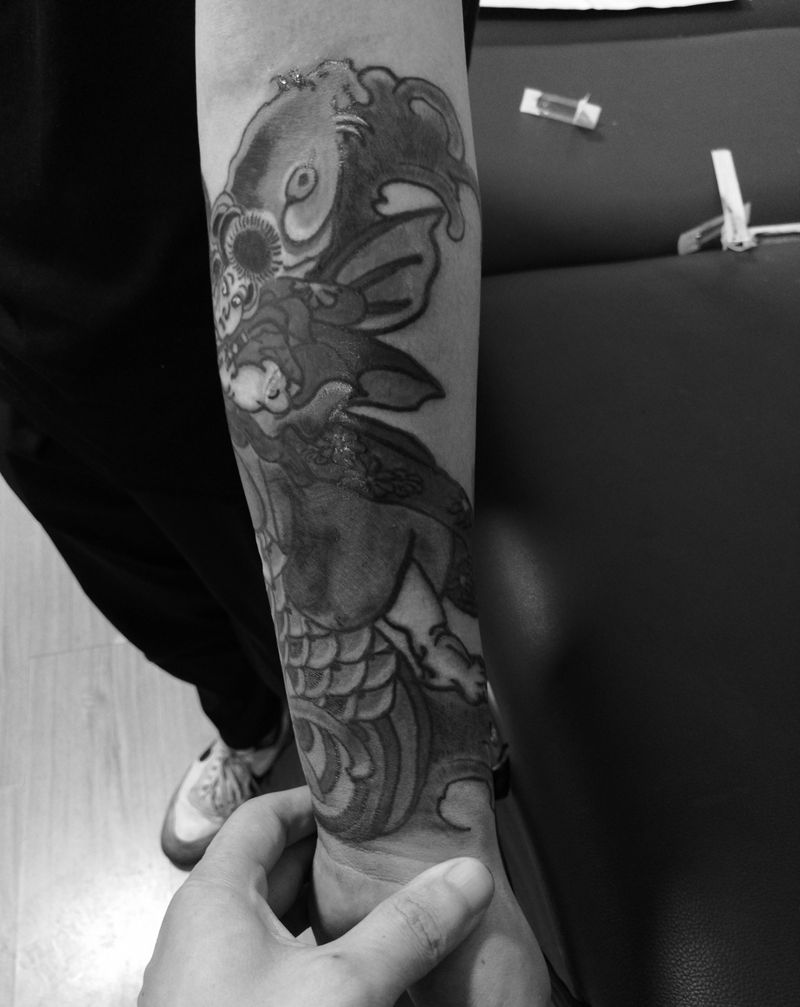 当前位置: 首页 >江苏省南京市纹身店-猩红刺青纹身图案>鬼若丸治鲤图,顺便遮盖旧纹身纹身图片_手臂老传统纹身图案