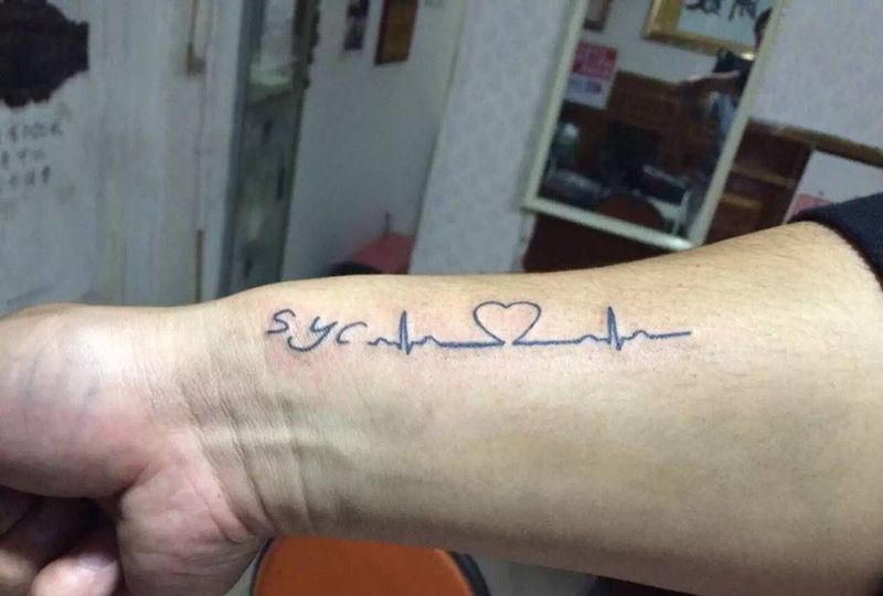 情侣字母加心电图纹身图片_字符情侣手臂纹身图案