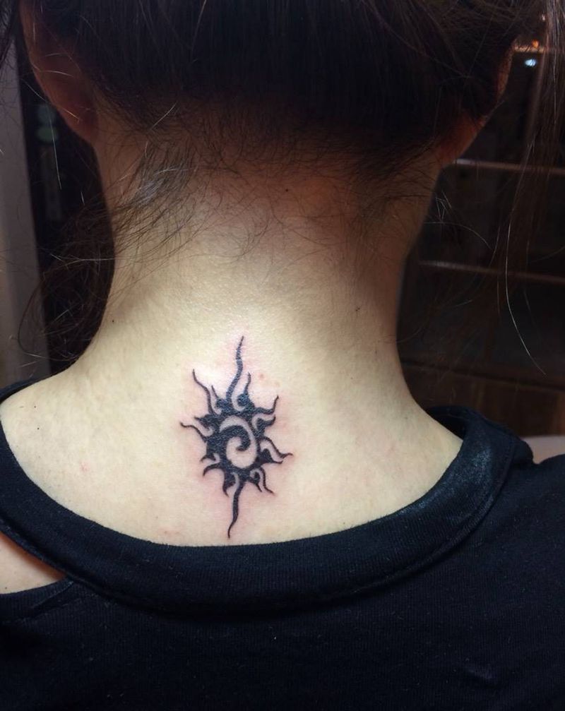 太阳图腾纹身图片_成品颈部图腾纹身图案