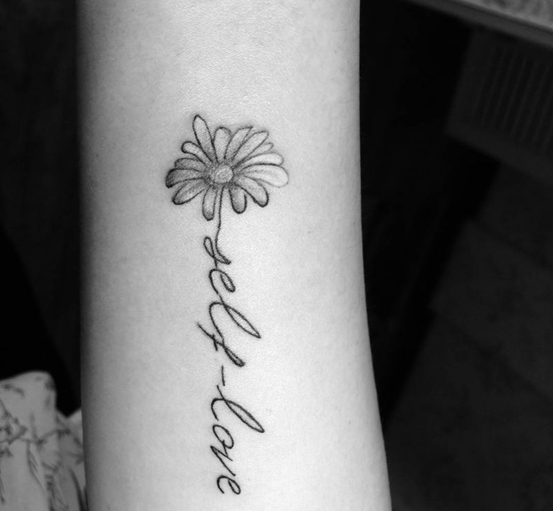 雏菊字母纹身图片_手臂成品清新字符纹身图案