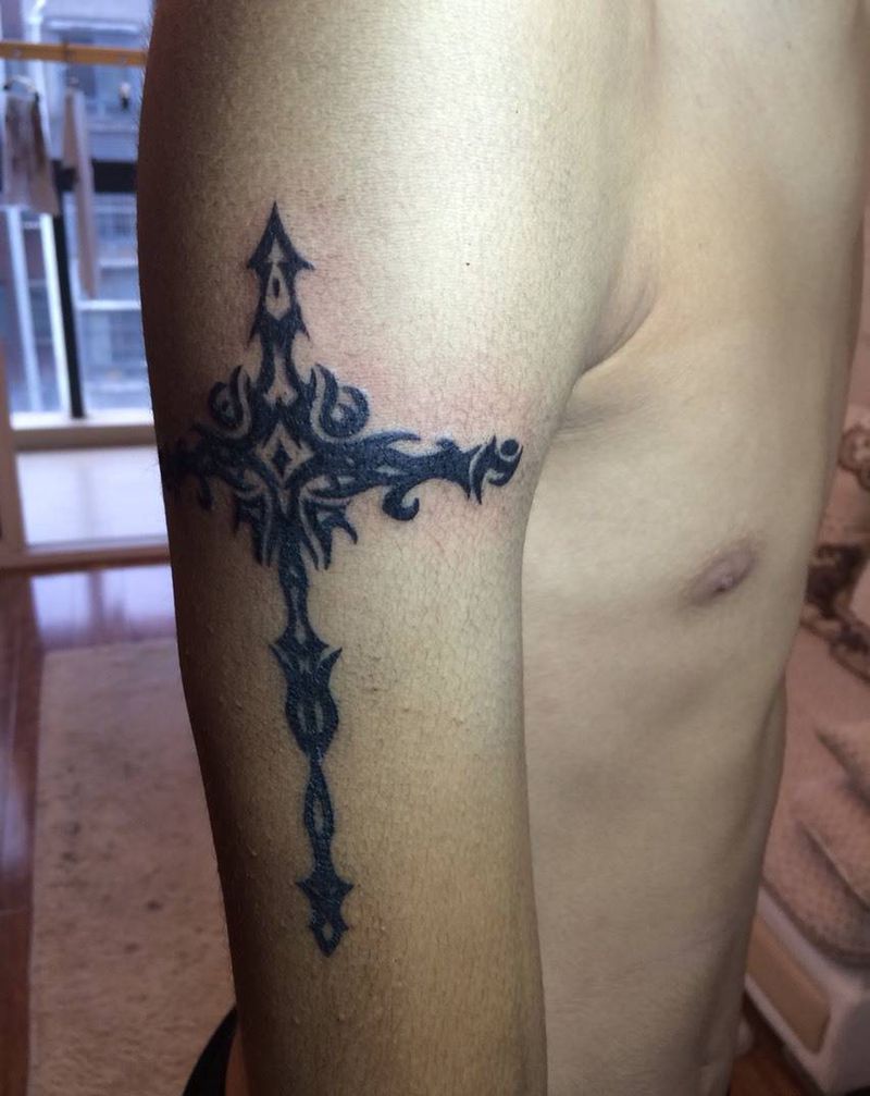 当前位置: 首页 >江苏省南京市纹身店-猩红刺青纹身图案>大臂十字架纹身图片_成品手臂图腾纹身图案