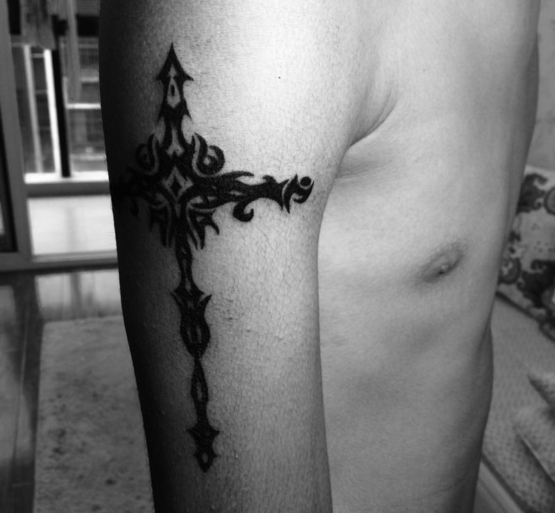 当前位置: 首页 >江苏省南京市纹身店-猩红刺青纹身图案>大臂十字架纹身图片_成品手臂图腾纹身图案