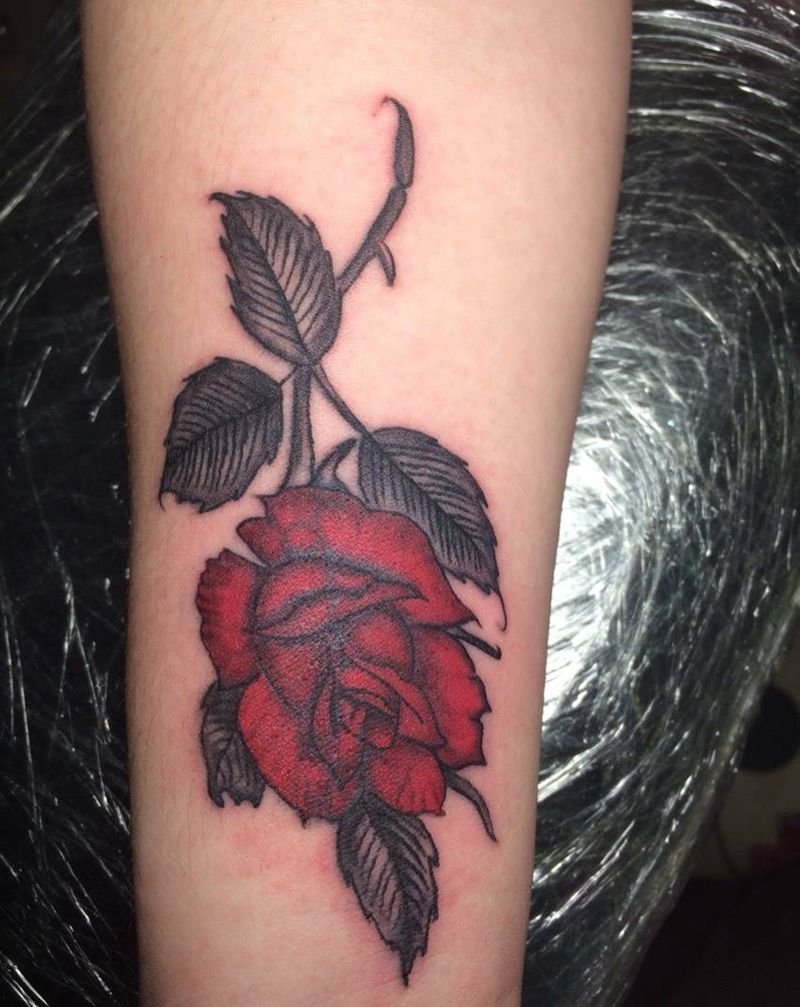 玫瑰盖字纹身图片_清新写实植物纹身图案