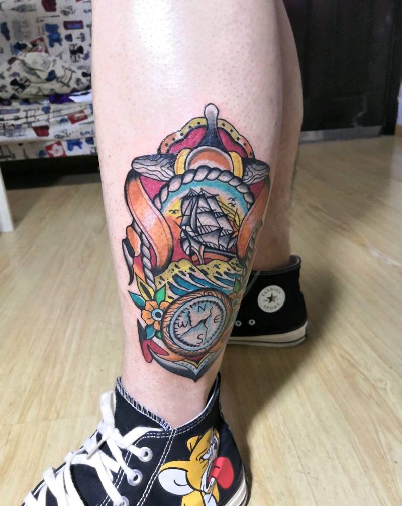 • T网红王老大花腿龙纹身图片_腿部新传统纹身图案