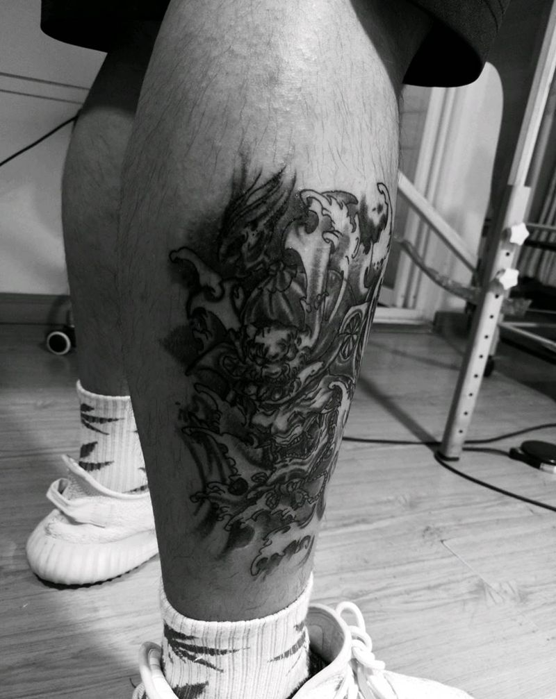• T网红王老大花腿龙纹身图片_腿部新传统纹身图案
