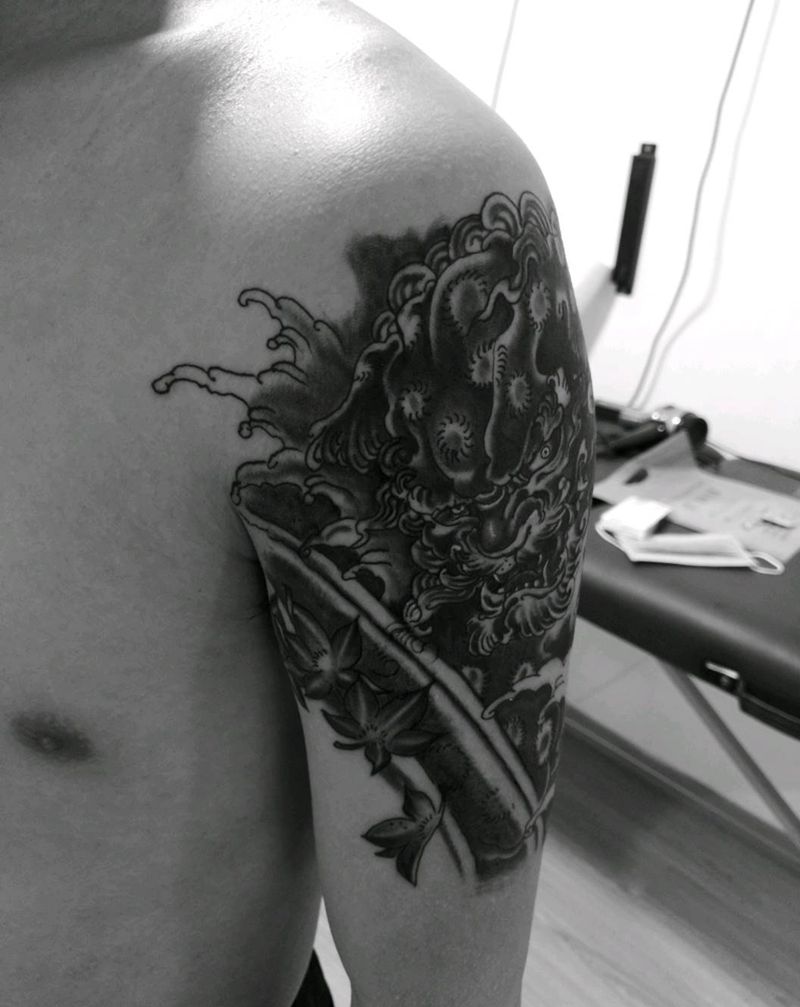 当前位置: 首页 >江苏省南京市纹身店-猩红刺青纹身图案>新增小狮子一枚,传统黑灰