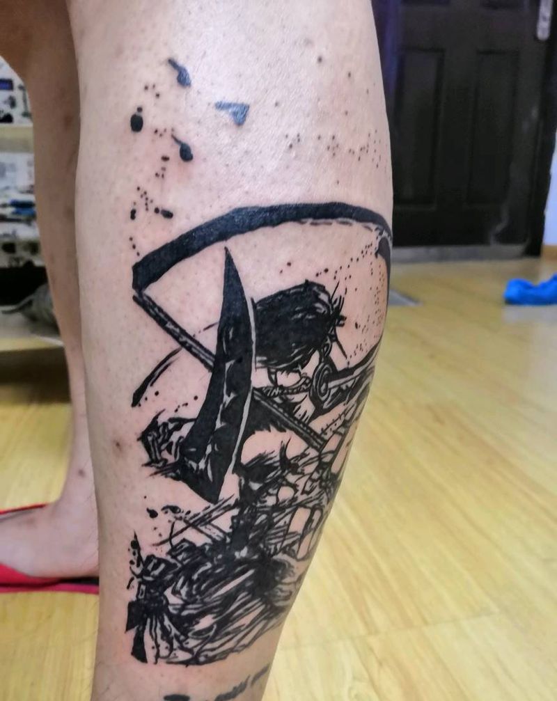 社会我隆哥,人狠话不多✌纹身图片_腿部水墨纹身图案