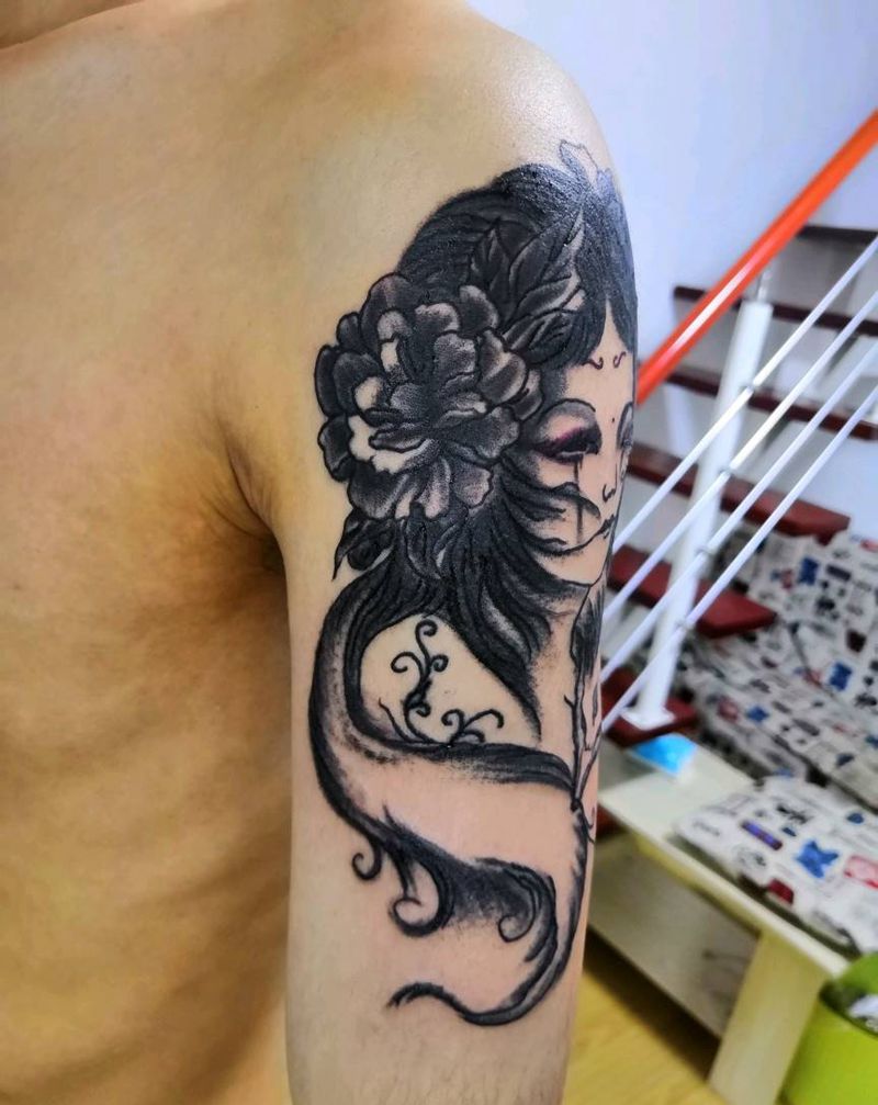• 纹身吧推荐的披肩图腾半胛纹身图案作品展示