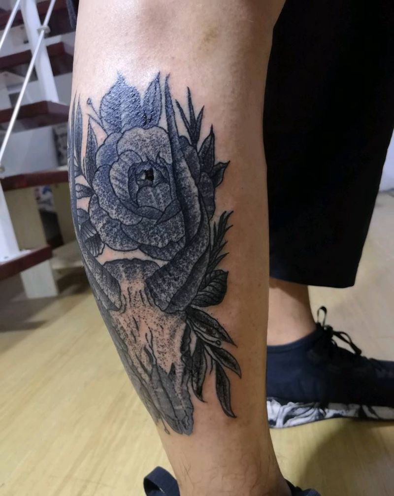 • T网红王老大花腿龙纹身图片_腿部新传统纹身图案
