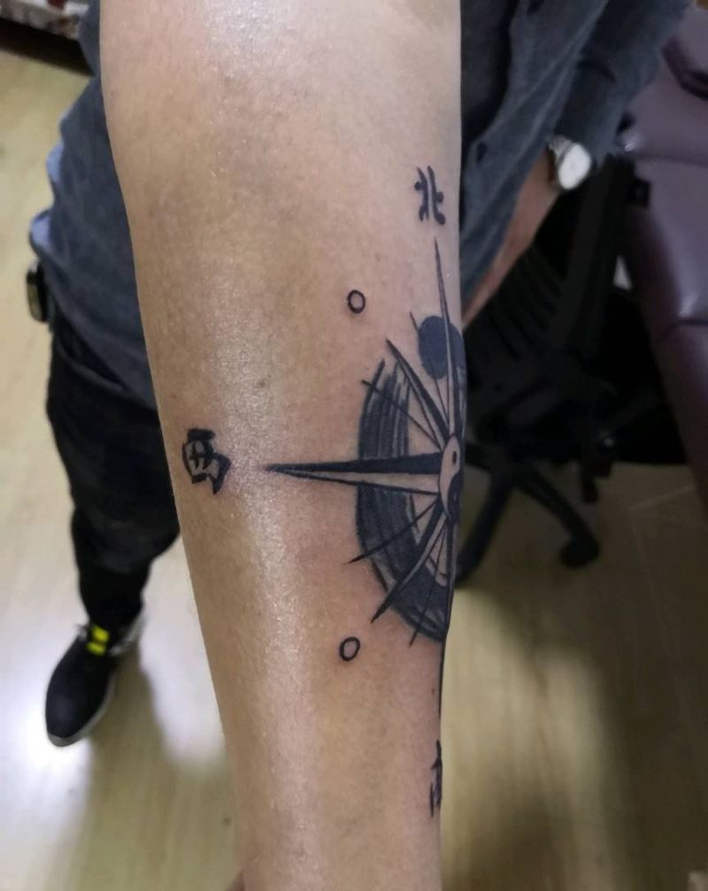 指南针纹身图片_手臂水墨纹身图案