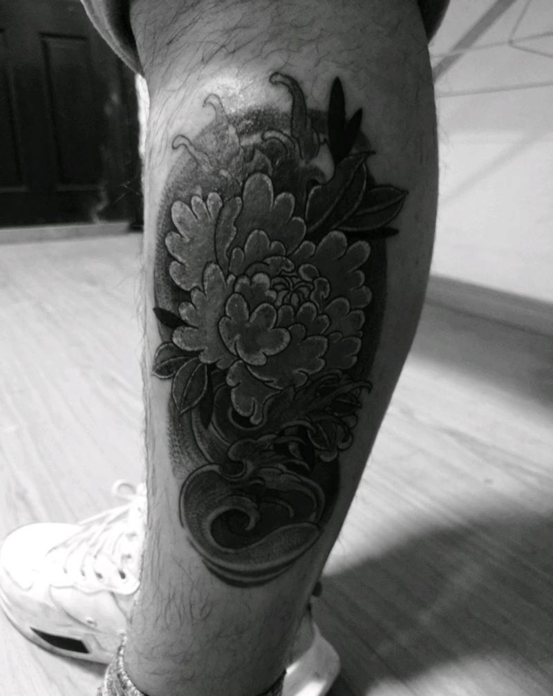 • T网红王老大花腿龙纹身图片_腿部新传统纹身图案