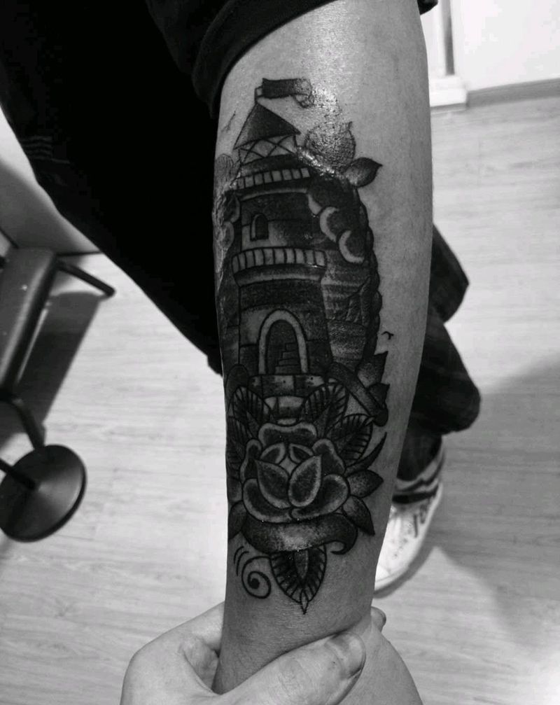 圆了帅哥的盖疤梦✌纹身图片_手臂老传统点刺纹身图案