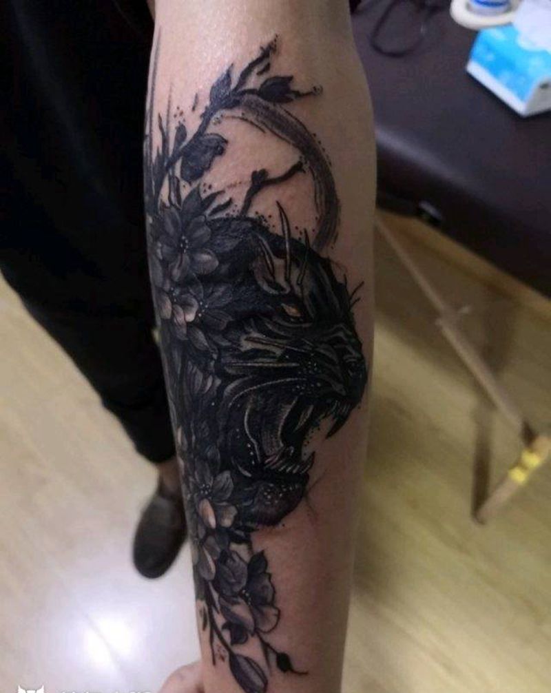 • T网红王老大花腿龙纹身图片_腿部新传统纹身图案