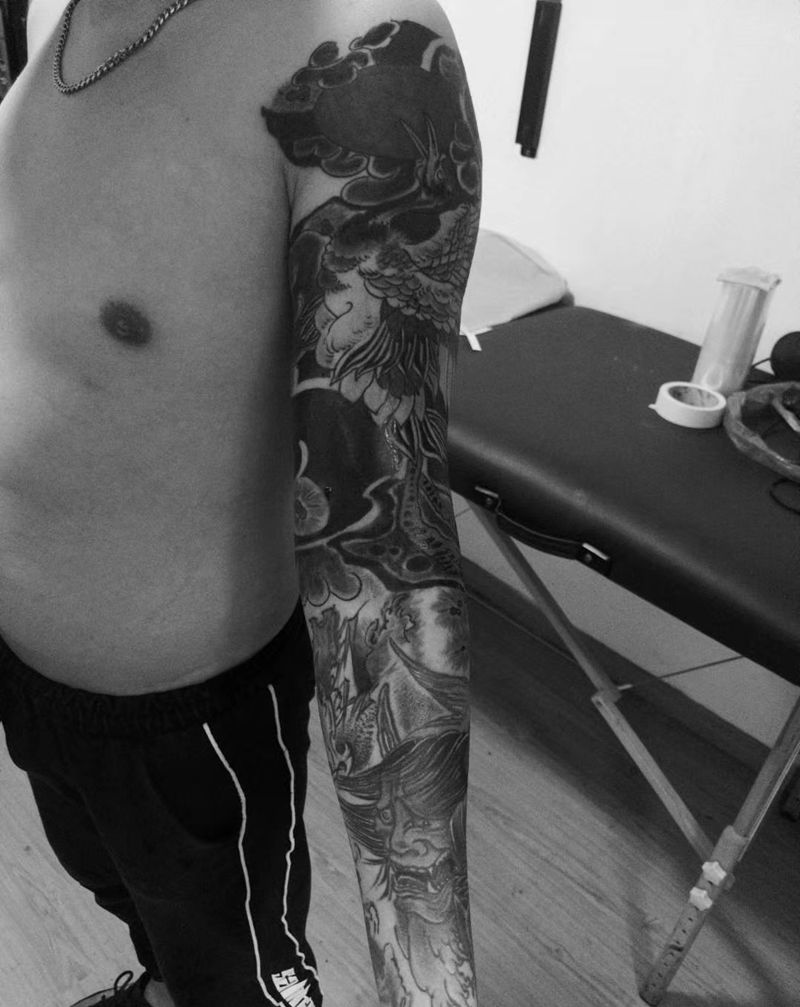 当前位置: 首页 >江苏省南京市纹身店-猩红刺青纹身图案>老传统和新传统的拼接花臂