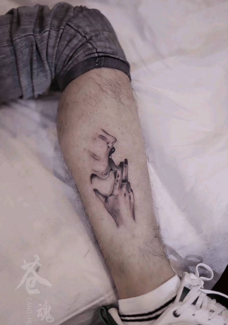 • T包小腿吹火男+阿多福纹身图片_腿部老传统新传统吹火男阿
