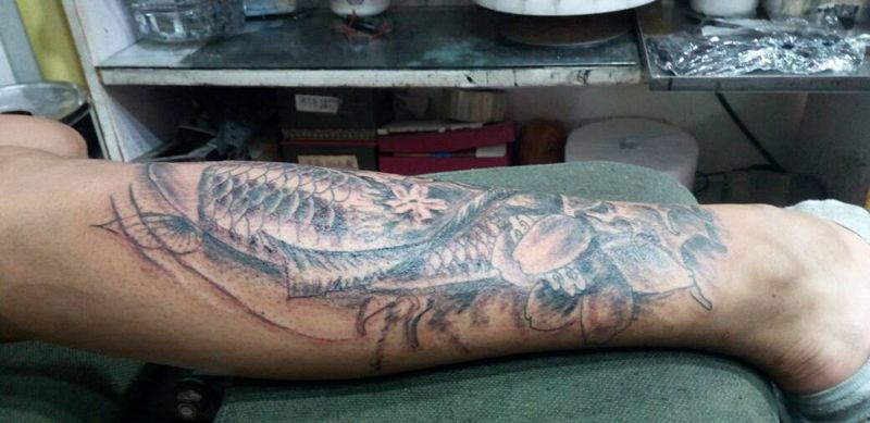 当前位置: 首页 >江苏省南京市纹身店-魔山刺青纹身图案>鲤鱼莲花纹身图片