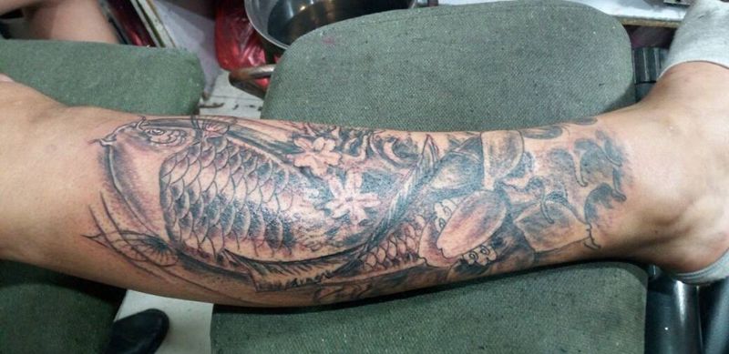 当前位置: 首页 >江苏省南京市纹身店-魔山刺青纹身图案>鲤鱼莲花纹身图片