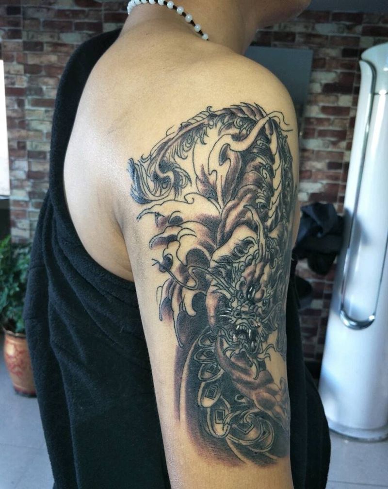 • T网红王老大花腿龙纹身图片_腿部新传统纹身图案