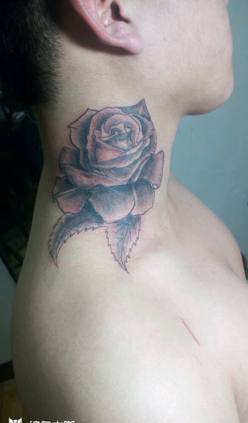 玫瑰花纹身图片_颈部纹身图案