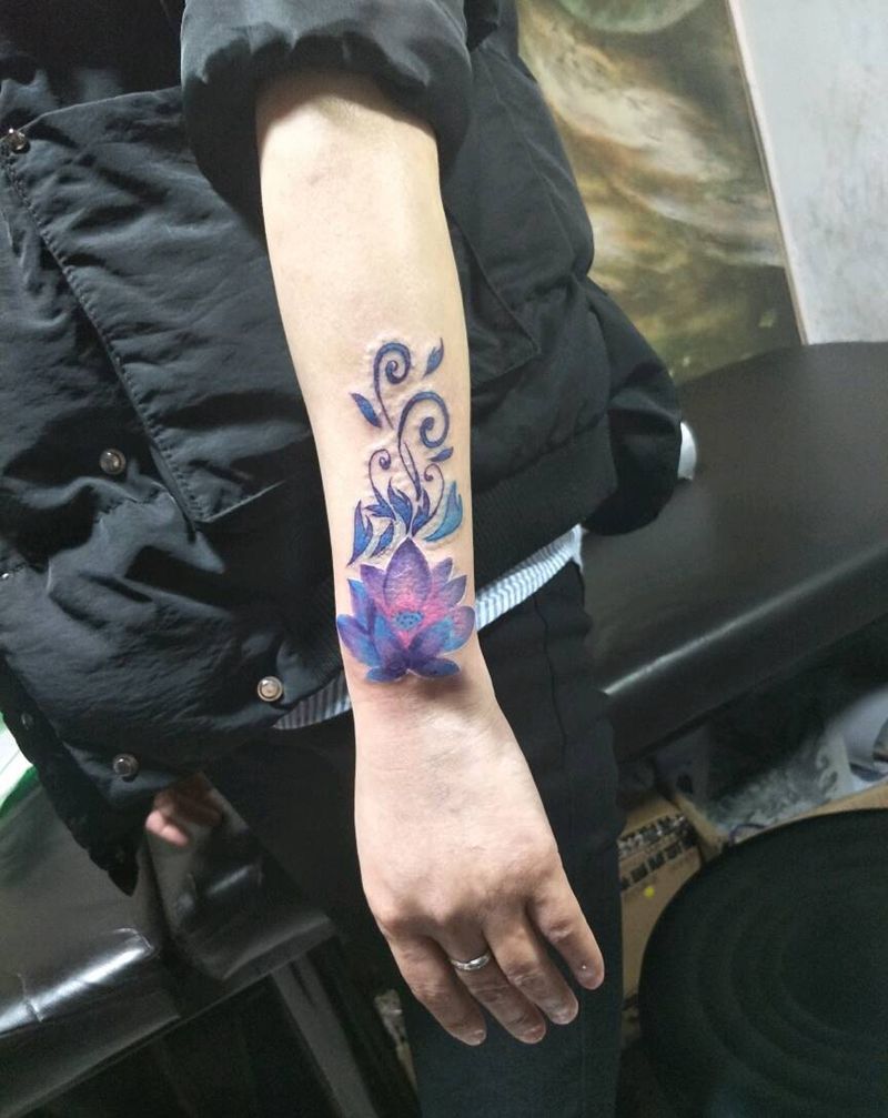 一组15张莲花纹身手