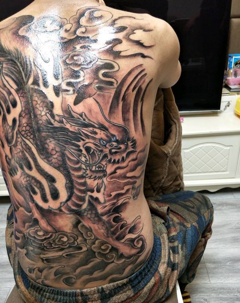 • T云龙九郎纹身图片_背部老传统云龙九郎纹身图案