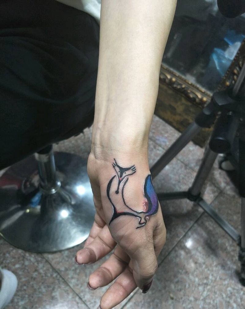 • 手背潮流时尚的玫瑰花眼睛纹身图案