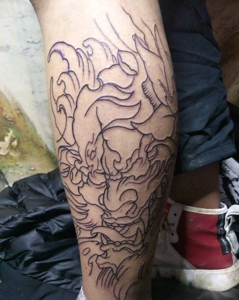 • T网红王老大花腿龙纹身图片_腿部新传统纹身图案