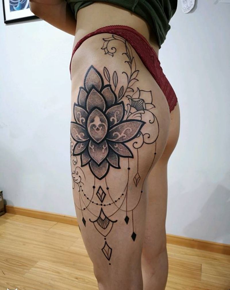繁花纹身图片_臀部点刺几何纹身图案