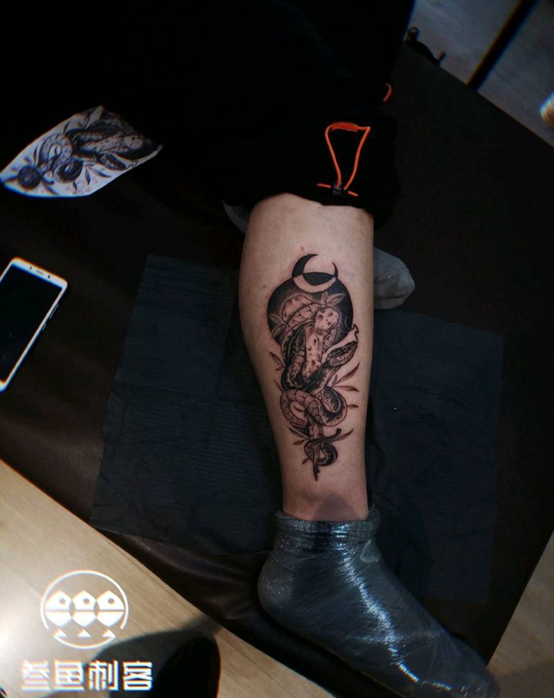 当前位置: 首页 >江苏省南京市纹身店-南京纹身叁鱼刺客工作室纹身图案>蛇主题纹身图片_腿部点刺蛇纹身图案