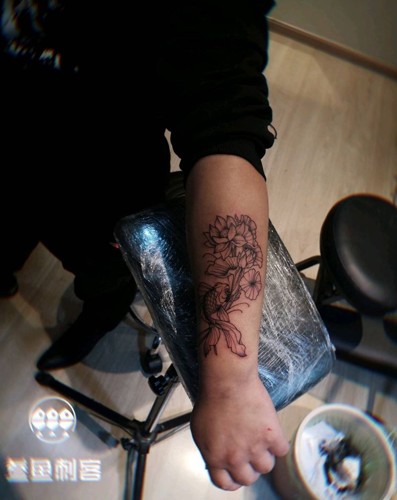 当前位置: 首页 >江苏省南京市纹身店-南京纹身叁鱼刺客工作室纹身图案>连莲有鱼纹身图片_手臂点刺年年有余纹身图案