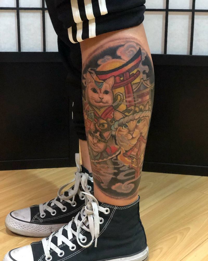 当前位置: 首页 >江苏省南京市纹身店-第五维度刺青纹身图案>小腿和风猫咪纹身图片