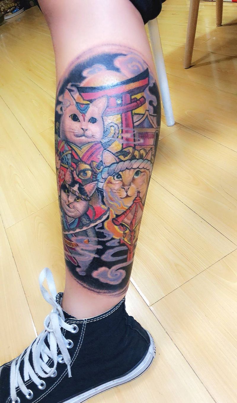 当前位置: 首页 >江苏省南京市纹身店-第五维度刺青纹身图案>小腿和风猫咪纹身图片