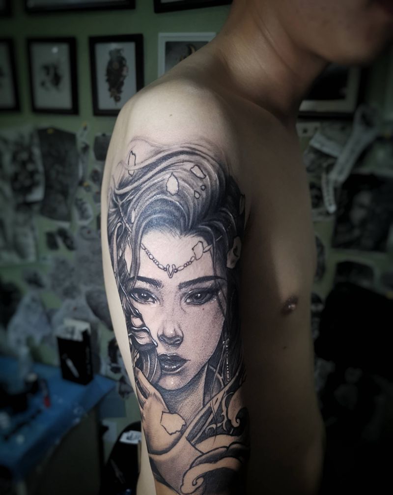 当前位置: 首页 >江苏省南京市纹身店-空杯刺青纹身图案>艺伎般若纹身图片_肩部纹身图案