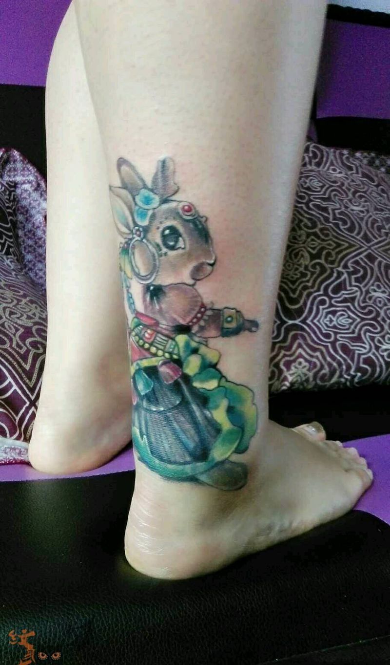 • T包小腿吹火男+阿多福纹身图片_腿部老传统新传统吹火男阿