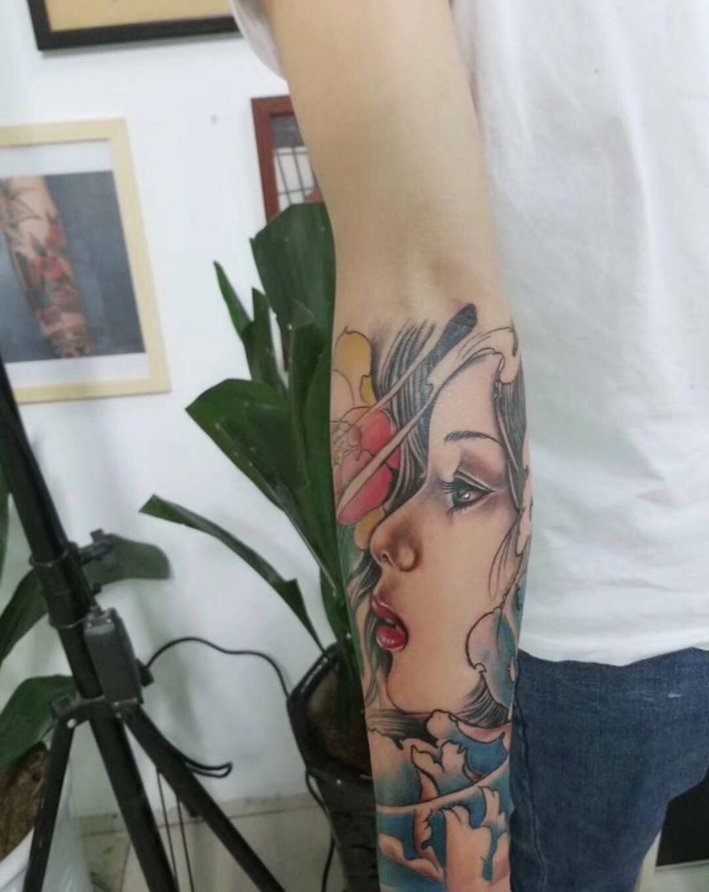 当前位置: 首页 >江苏省无锡市纹身店-迷刺青纹身图案>艺妓美女纹身图片_手臂新传统New School艺妓艺伎美女纹身图案
