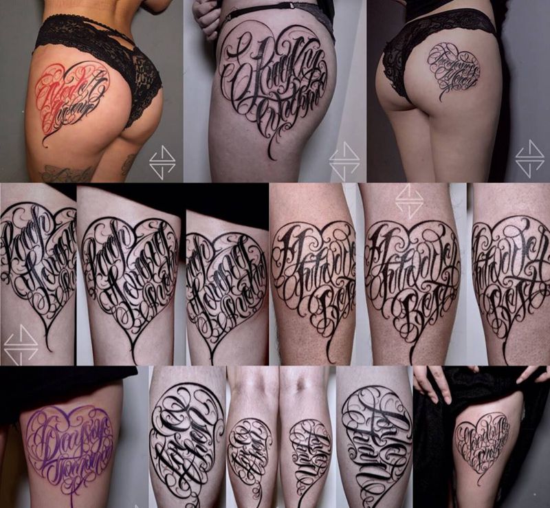 爱心花体字纹身图片
