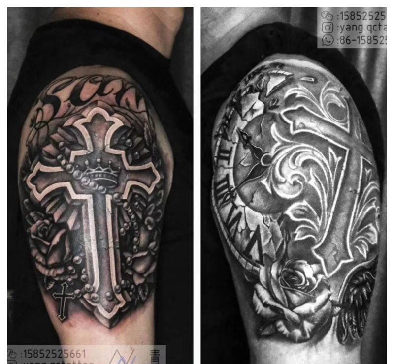 • 纹身吧推荐的披肩图腾半胛纹身图案作品展示