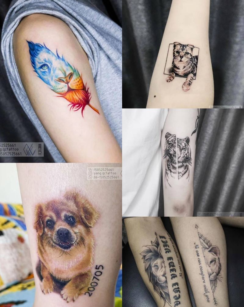 青臣刺青近两年宠物纹身作品纹身图片_手臂腿部欧美写实点刺猫狗写实纹身图案