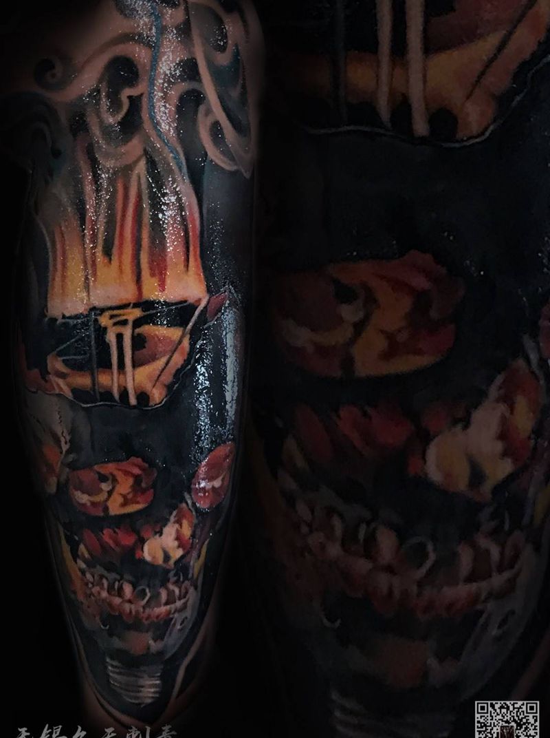 当前位置: 首页 >江苏省无锡市纹身店-久天刺青纹身图案>骷髅纹身图片_成品腿部欧美写实鬼神纹身图案