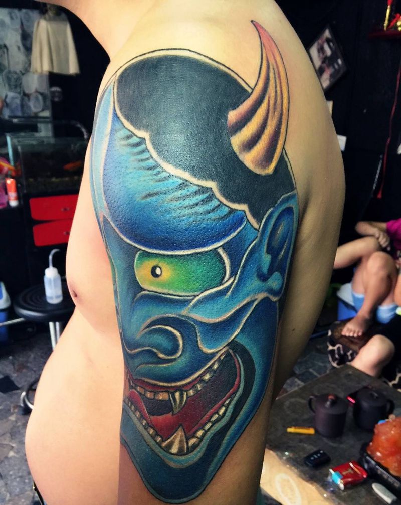 当前位置: 首页 >江苏省无锡市纹身店-林刺青纹身图案>大臂彩色般若(遮盖作品)纹身图片