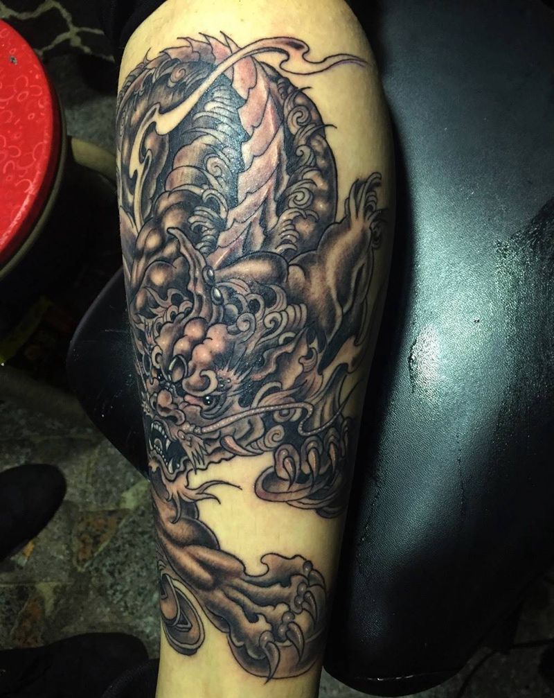 当前位置: 首页 >江苏省无锡市纹身店-林刺青纹身图案>貔貅小腿纹身图片